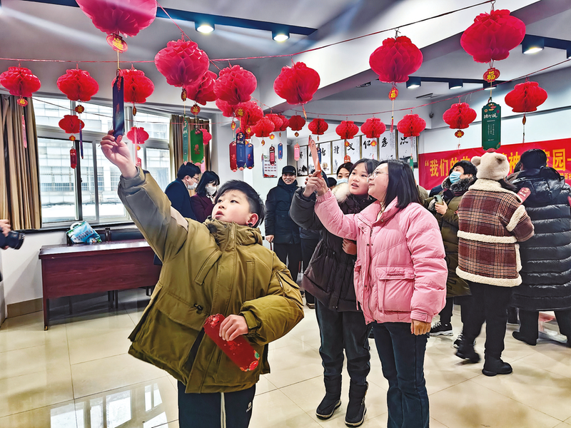 2月22日下午,貴池區(qū)清風街道翠百社區(qū)開展“喜迎元宵節(jié) 歡樂慶團圓”主題黨日活動,圖為社區(qū)居民在猜燈謎。記者 張延鶴 攝
