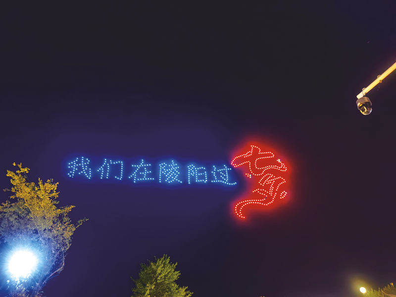 無人機(jī)矩陣表演。