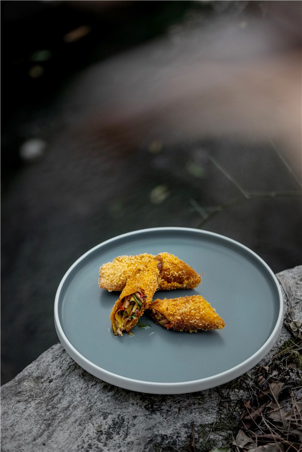 相傳,陶淵明曾四次到訪池州,在此地“渴了吃桃,餓了吃菊”。后人為致敬他,特將陶公摯愛的菊花與青紅椒、蛋皮、里脊肉、香菇等食材卷成卷狀,以如意卷相稱。其味濃郁,唇齒留香。