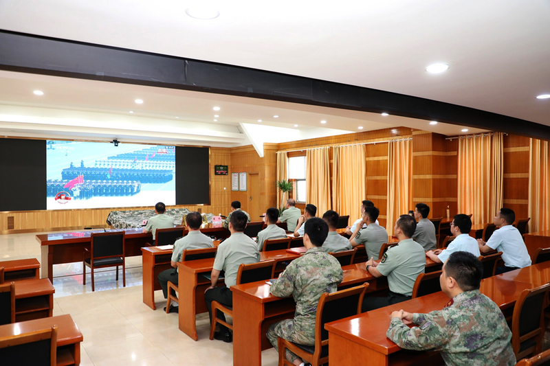 池州軍分區(qū)官兵集中觀看閱兵儀式。 記者 張延鶴 攝