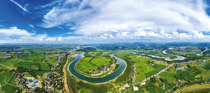 初秋時節(jié),貴池區(qū)涓橋鎮(zhèn)貴嘉灘迎來最美景致。蜿蜒的河流如玉帶般環(huán)繞鄉(xiāng)野,澄澈碧水與兩岸連片翠綠的農(nóng)田交相輝映;錯落有致的村落點(diǎn)綴其間,與規(guī)整的田園、蔥郁的林木共同勾勒出人與自然和諧畫卷。