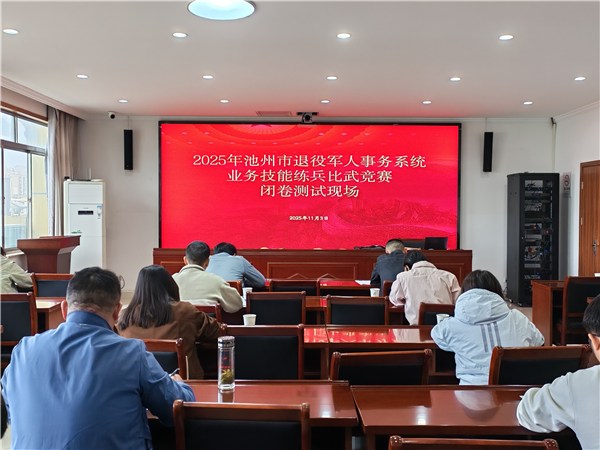 為深入學(xué)習(xí)貫徹習(xí)近平總書記關(guān)于退役軍人工作重要論述和重要指示批示精神,2025年11月3日至4日,池州市退役軍人事務(wù)局組織全市系統(tǒng)干部職工開展業(yè)務(wù)練兵比武競(jìng)賽。本次競(jìng)賽以“比武競(jìng)賽強(qiáng)技能 實(shí)戰(zhàn)賦能優(yōu)服務(wù)”為主題,來自各縣(區(qū))6支代表隊(duì)18名參賽選手,以及78家退役軍人服務(wù)站的工作人員,共計(jì)110余人參加。市退役軍人事務(wù)局黨組書記、局長(zhǎng)趙可靜,黨組成員、副局長(zhǎng)汪鳴駒,市總工會(huì)勞動(dòng)和經(jīng)濟(jì)工作部部長(zhǎng)張?jiān)鱿顒?dòng)并為獲獎(jiǎng)選手頒獎(jiǎng)。市退役軍人事務(wù)局二級(jí)調(diào)研員方昌海擔(dān)任主評(píng)委,并現(xiàn)場(chǎng)點(diǎn)評(píng)。