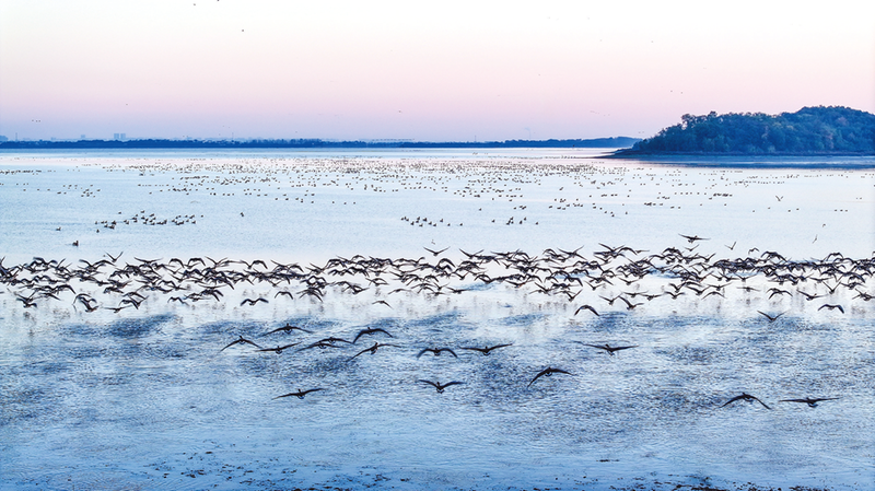11月19日清晨,4萬余只白頭鶴、東方白鶴、小天鵝和豆雁等候鳥齊聚升金湖國家級自然保護(hù)區(qū),呈現(xiàn)一幅水清岸綠、飛鳥翔集的生態(tài)畫卷。隨著氣溫逐漸降低,升金湖迎來候鳥遷徙高峰,預(yù)計今冬來升金湖越冬的候鳥總數(shù)將達(dá)10萬只。
