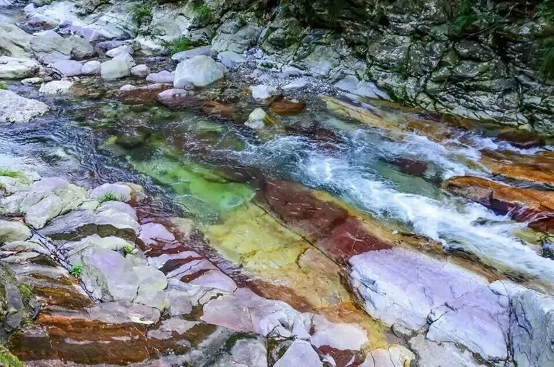 如果說水是七彩玉谷的靈,那么石便是它的骨。沿谷而行,隨處可見被水長期沖刷的河床,大石與小石彼此依偎、層層疊疊,像一支沉默的軍隊,手拉手、肩并肩,任憑狂風(fēng)驟雨、山洪奔涌,也難以撼動它們眾志成城的陣勢。它們經(jīng)歷過地殼裂變、巖漿奔突、歲月剝蝕,卻依舊堅毅如初,美麗如初。地質(zhì)學(xué)家稱它們?yōu)椤皶伎紖s沉默不語的大自然精靈”,我更愿視之為山谷里的花朵——不喧嘩,不招搖,只在漫長時光里,把每一次沖刷當(dāng)作雕琢,把每一次碰撞當(dāng)作磨礪。它們把堅韌寫在肌理里,把從容刻在輪廓上:有的如屏如壁,鎮(zhèn)守谷口;有的如砥如柱,撐起水脈;有的如卵如丸,隨波逐流卻從不迷失方向。它們見證億萬年的風(fēng)云變幻,也見證每一個在谷中駐足的人——有人為色彩而來,有人為水聲而來,有人為光影而來,而我,為它們堅韌不拔的品格而來。