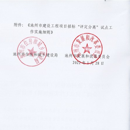 | 標(biāo)題: | 【市場主體反映工程建設(shè)項(xiàng)目審批問題的辦理和反饋機(jī)制】關(guān)于印發(fā)《池州市建設(shè)工程項(xiàng)目招標(biāo)“評定分離”試點(diǎn)工作實(shí)施細(xì)則》的通知 | 文號: | 池建市函〔2022〕63號 |