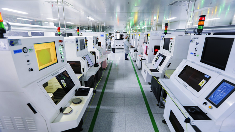 圖為安芯電子技術(shù)人員在切割車(chē)間進(jìn)行激光切割作業(yè)。記者 吳駿 攝