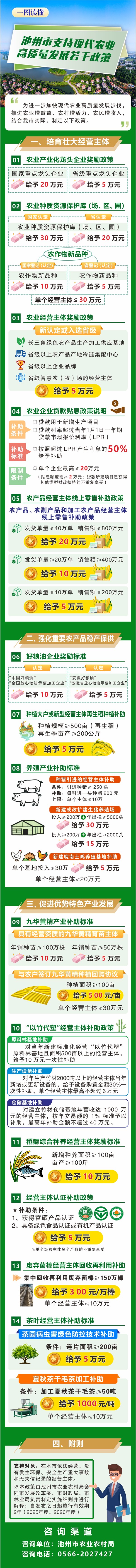 | 標(biāo)題: | 【市農(nóng)業(yè)農(nóng)村局圖片解讀】一圖讀懂《池州市支持現(xiàn)代農(nóng)業(yè)高質(zhì)量發(fā)展若干政策》 | 文號(hào): | 無(wú) |