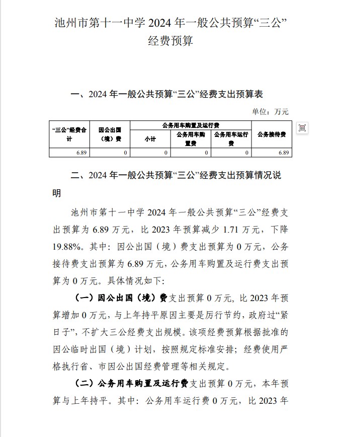 池州市第十一中學(xué)2024年一般公共預(yù)算“三公”經(jīng)費(fèi)預(yù)算