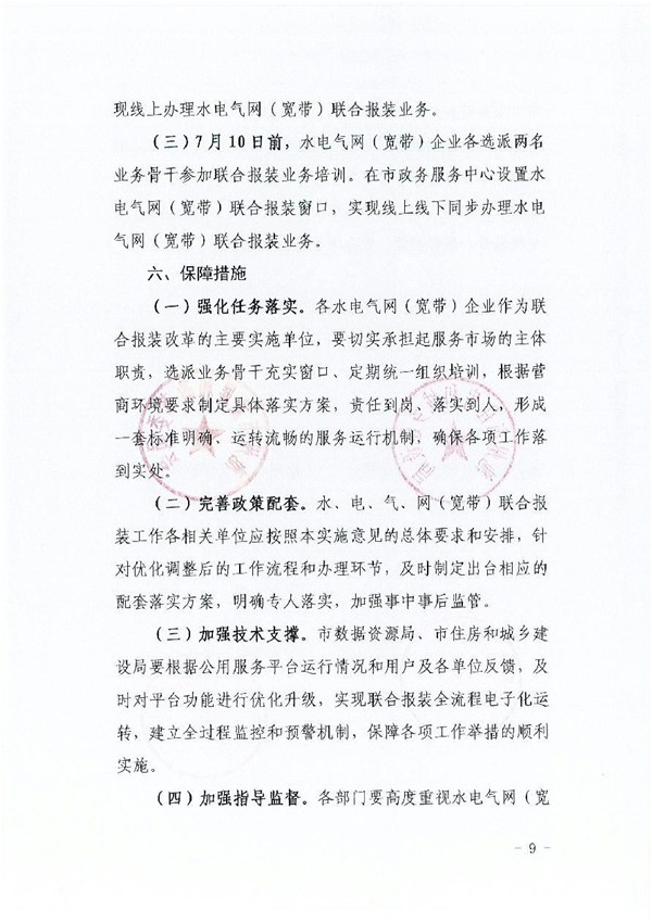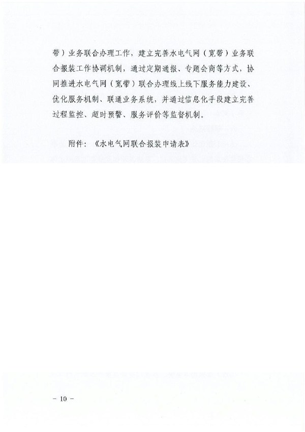 關于水電氣網(wǎng)(寬帶)聯(lián)合報裝工作的實施意見