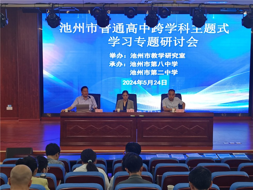 百年大計(jì),教育為本,教育大計(jì),教師為本。為提高兩校課題申報及研究質(zhì)量,幫助青年教師開闊教研視野,提煉教學(xué)成果,助力青年教師成長,5月24日上午,由池州市教學(xué)研究室主辦,兩校共同承辦的“高中跨學(xué)科主題式學(xué)習(xí)實(shí)施策略”專題研討活動在我校報告廳順利開展,七十余名市級骨干教師參加學(xué)習(xí)交流。