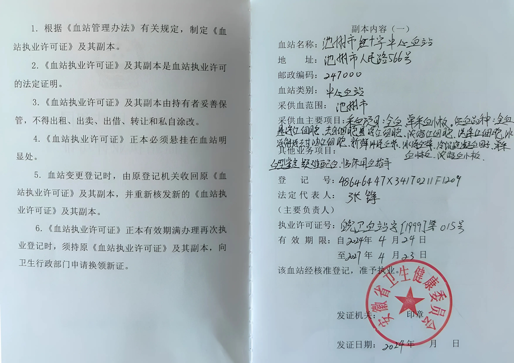 一、機(jī)構(gòu)名稱:池州市紅十字中心血站